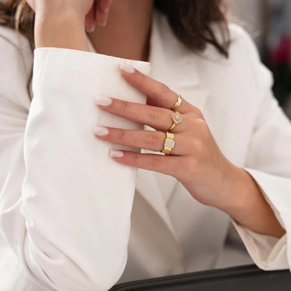 Taşlı Minimal Trend Yüzük 14 Ayar Altın