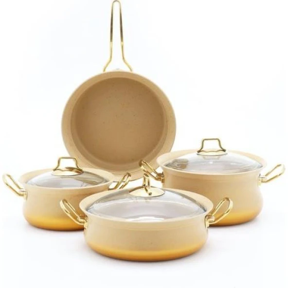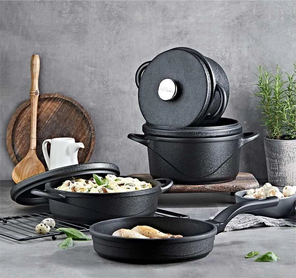Oms 3557 Wave Quartz Prıme 7 Parça Biogranit Döküm Tencere Seti