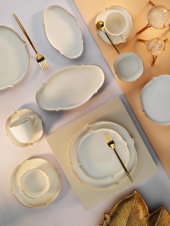 Evaliza Alaia Stella Gold 60 Parça 12 Kişilik Porselen Yemek Takımı