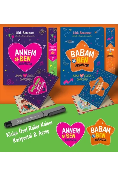 nesnel yayınlar Annem - Babam ve Ben Aramızda Ayraç Kartpostal Kişiye Özel Kalem - Turuncu