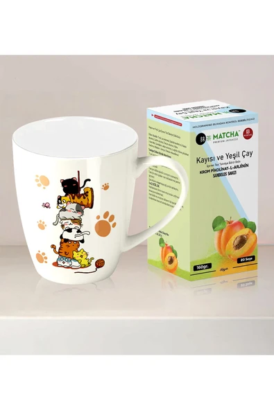 Halk Kitabevi Yaramaz Kediler Kupa Bardak - Matcha Kayısı Aromalı Form Çayı