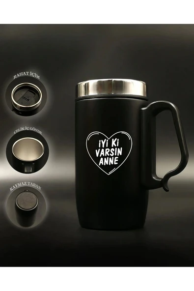 nesnel yayınlar Anneler Gününe Özel Canım Annem Yazılı Siyah Kulplu Termos Bardak