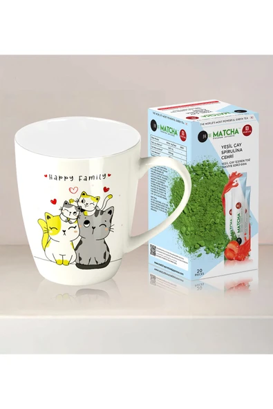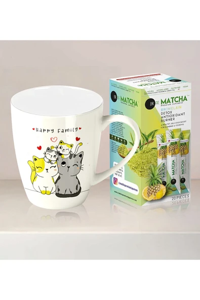 Halk Kitabevi Kedi Ailesi Kupa Bardak - Matcha Bromelain Limon Aromalı Form Çayı