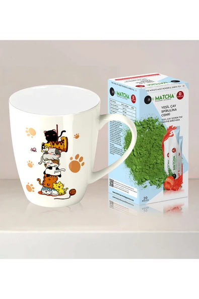 Halk Kitabevi Yaramaz Kediler Kupa Bardak - Matcha Bromelain Limon Aromalı Form Çayı