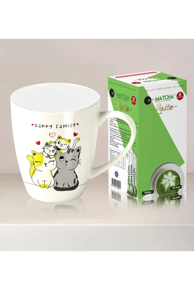 Halk Kitabevi Kedi Ailesi Kupa Bardak - Matcha Çilek Aromalı Form Çayı