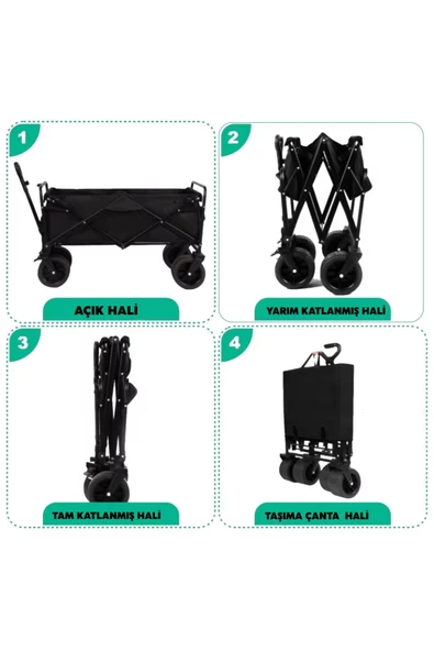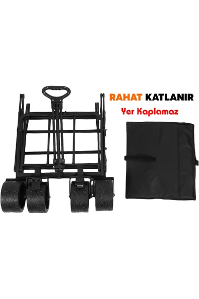 Katlanır El Arabası Wagon Araba Kamp Arabası 100 Kg Taşıma Kapasiteli Outdoor Plaj Kamp Arabası