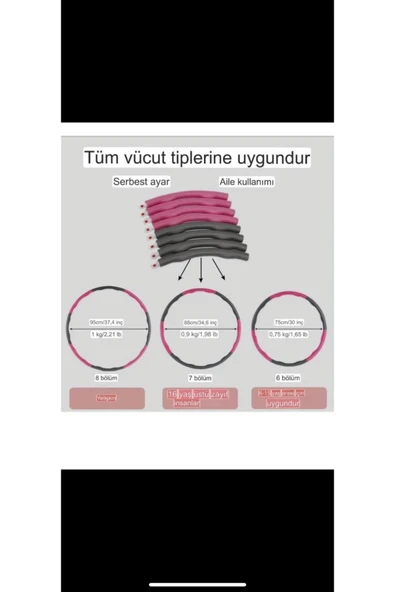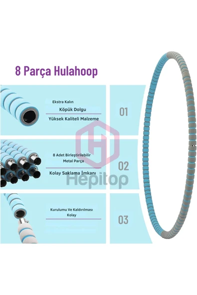 HEPİTOP 8 Parçalı Ayarlanabilir Ağırlıklı Hula Hoop – 1 kg, 72/85/95 cm Wellness Hoop Egzersiz Çemberi