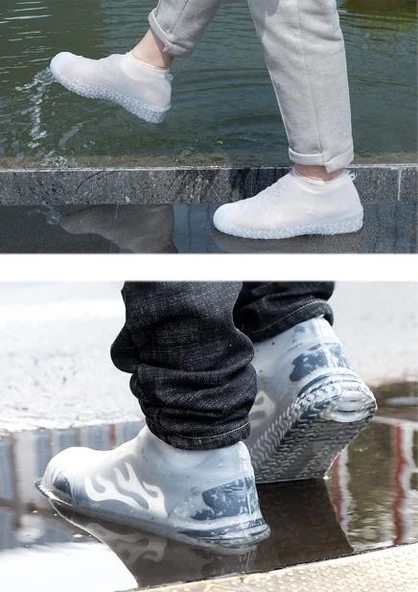 Silikon Ayakkabı Kılıfı Kaymaz Su Kir Geçirmez M Beden Beyaz