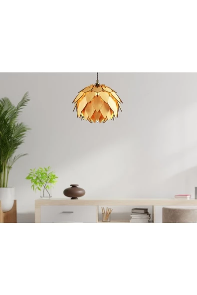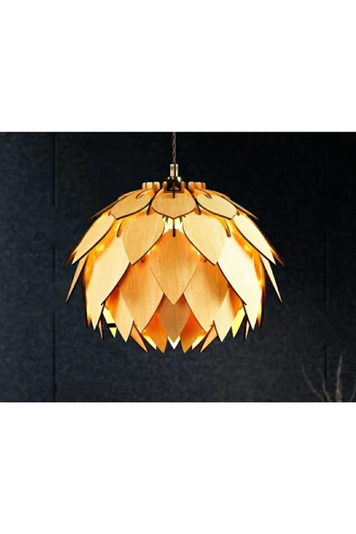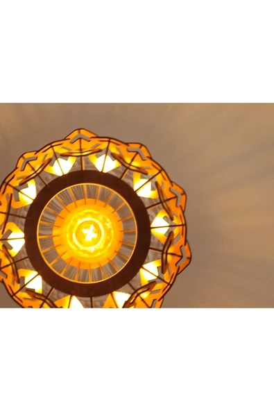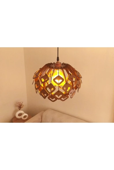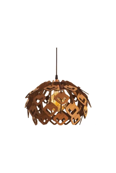 HÜMAModern Tasarım Doğal Ahşap Mdf 3d Lazer Kesim Rustik Salon Avize