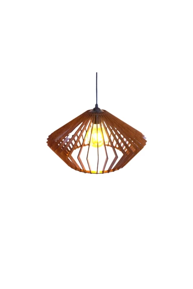hü ma tasarım ve aksesuarModern Tasarım Konik Doğal Ahşap Mdf 3d Lazer Kesim Rustik Salon Avize