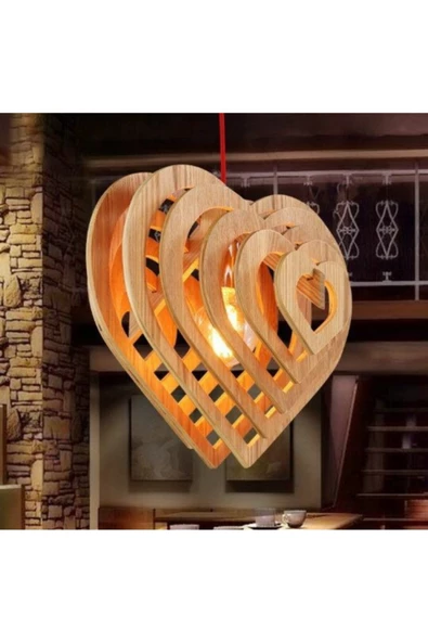 hü ma tasarım ve aksesuarModern Tasarım Kalp Modeli Doğal Ahşap Mdf 3d Lazer Kesim Rustik Salon Avize