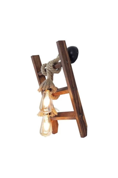 HÜMATasarım 2'li Rustik Nigrum Halatlı Ahşap Merdiven Avize Aplik