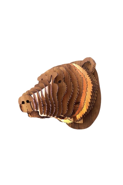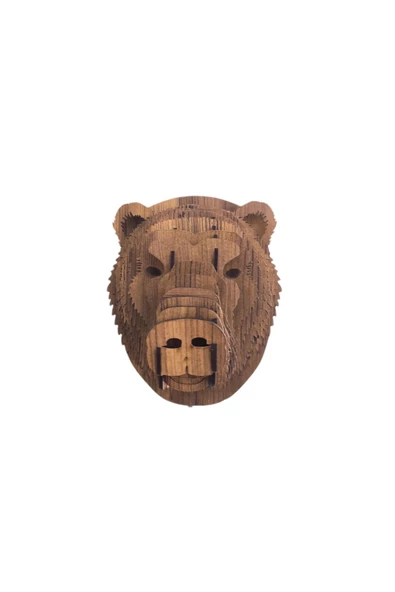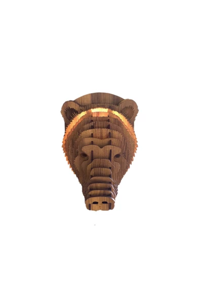 hü ma tasarım ve aksesuarBoz Ayı Kafası Tasarımlı Doğal Ahşap Mdf Lazer Kesim Rustik Salon Aplik Duvar Dekoru (ampul Dahil)