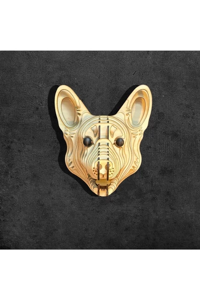 hü ma tasarım ve aksesuarKelb Köpek Kafası Doğal Ahşap Lazer Kesim Rustik Salon Aplik Duvar Dekoru 3D Tablo Pano (Peri LEDli)
