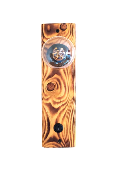 hü ma tasarım ve aksesuarAçma Kapama Butonlu Doğal Ahşap Edison Rustik Salon Duvar Aplik Kütük Aplik Avize 25 cm