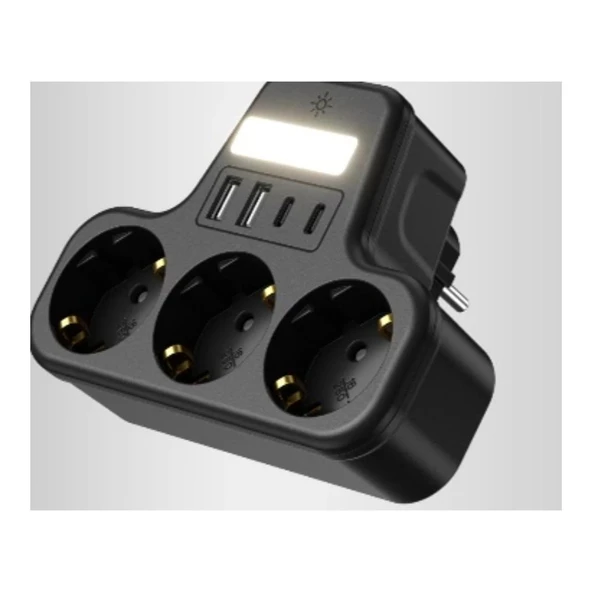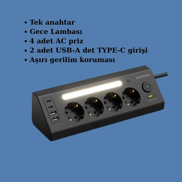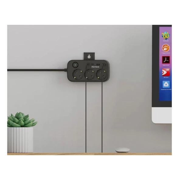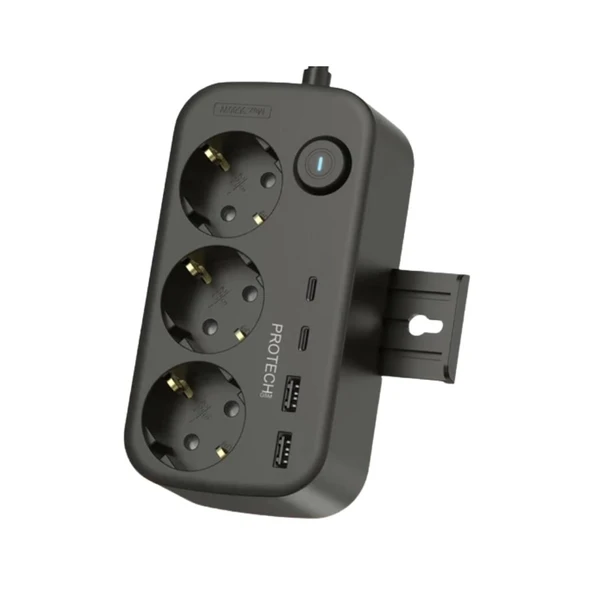 3'lü Akım Korumalı Priz | USB + Type-C Çıkışlı Çoklu Şarj Ünitesi