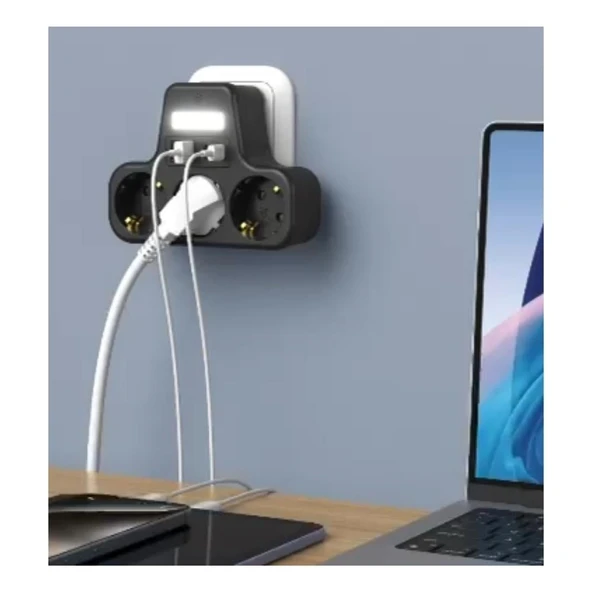 Korumalı 2'li Priz, 2 USB Girişli Type-C Girişli 1.4 Uzatmalı Grup Akım Korumalı Dayanıklı Priz