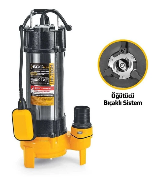 SGS5377 - 21 Metre 3 HP İnox Foseptik Dalgıç Pompa Parçalayıcı Öğütücü Bıçaklı 2200 Watt