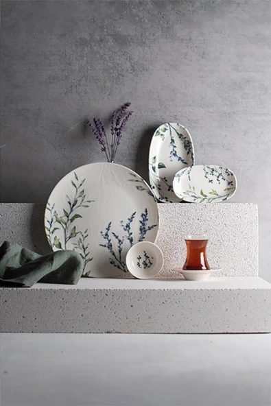 ChiChi HOME Lavender 6 Kişilik 26 Parça Çay Bardaklı Porselen Kahvaltı Seti