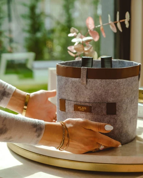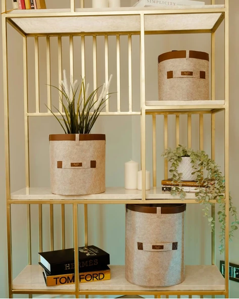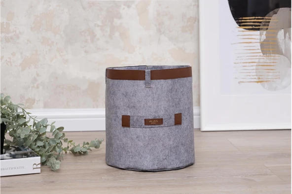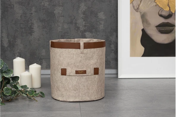 Deri Şeritli Yuvarlak Çok Amaçlı Düzenleyici Organizer Kutu Keçe Sepet (maxi) 03815