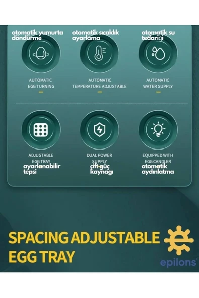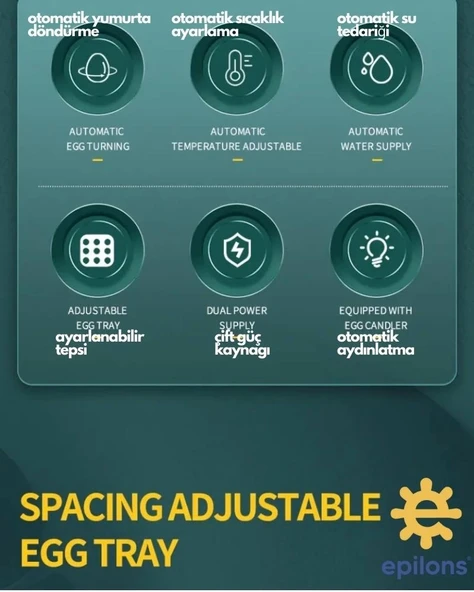 Epo-130my Kuluçka Makinesi | 130 Yumurtalık, Yedek Motorlu İncubator