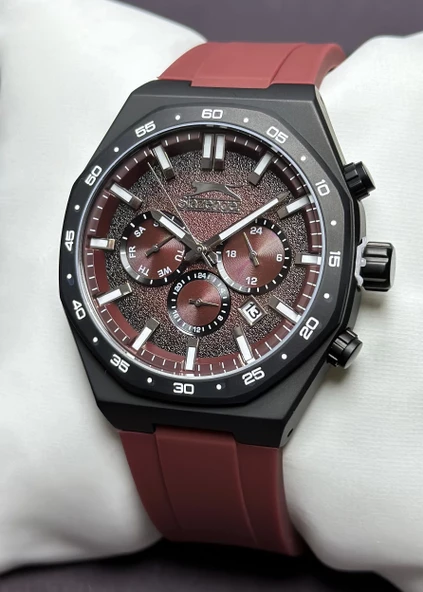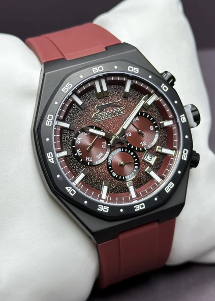 Slazenger Orijinal 2 Yıl Garantili Su Geçirmez Kırmızı Silikon Kordon Fonksiyonlu Erkek Kol Saati