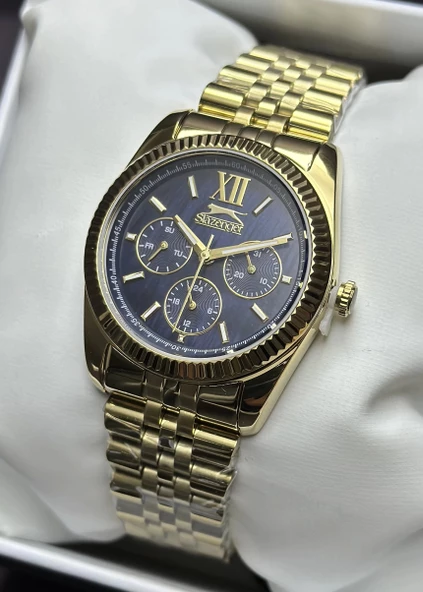 Slazenger Lacivert Kadran Gold Renk Kordon Kadın Kol Saati