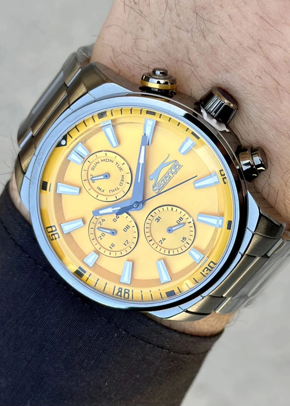 Slazenger Orijinal 2 Yıl Garantili Su Geçirmez Çelik Kordon Fonksiyonlu Erkek Kol Saati