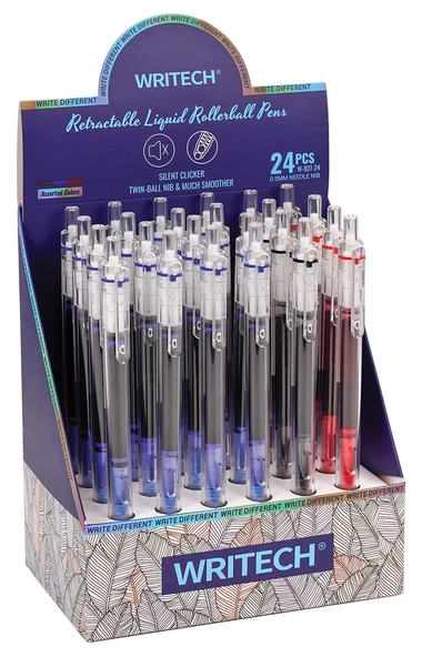 WRITECH W-927 BASMALI ROLLER 0,5MM KALEM (MAVİ-SİYAH-KIRMIZI) - 24'LÜ SET