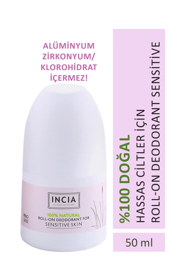 INCIA %100 Doğal Roll On Deodorant Hassas Ciltler İçin Ter Kokusu Önleyici Lekesiz 50 ml