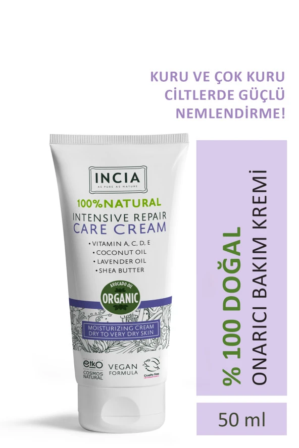 INCIA %100 Doğal Onarıcı Bakım Kremi Yoğun Nemlendirici Cilt Bakım Lavanta Avokado Shea Vegan 50 ml