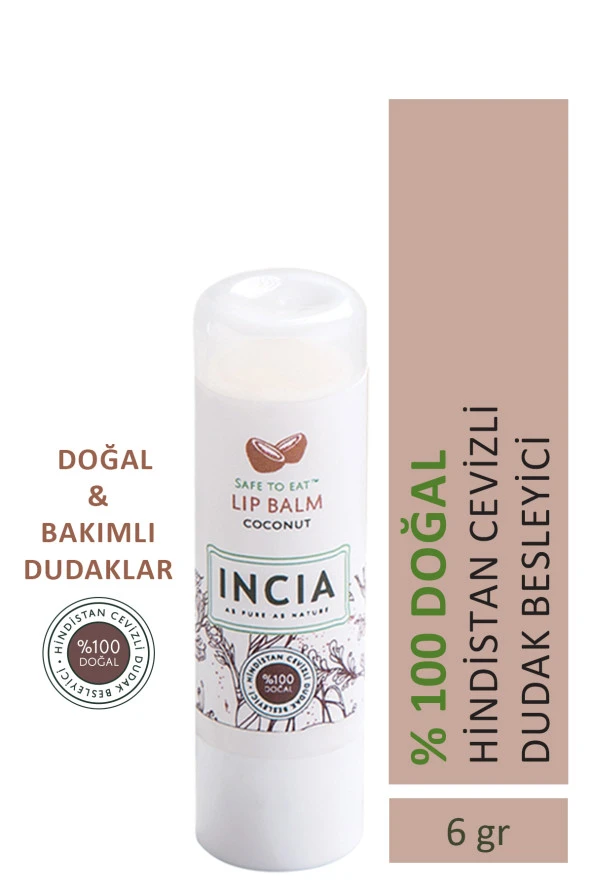 INCIA %100 Doğal Dudak Besleyici Hindistan Cevizi Bitkisel Nemlendirici Dudak Bakım Kremi 6 G