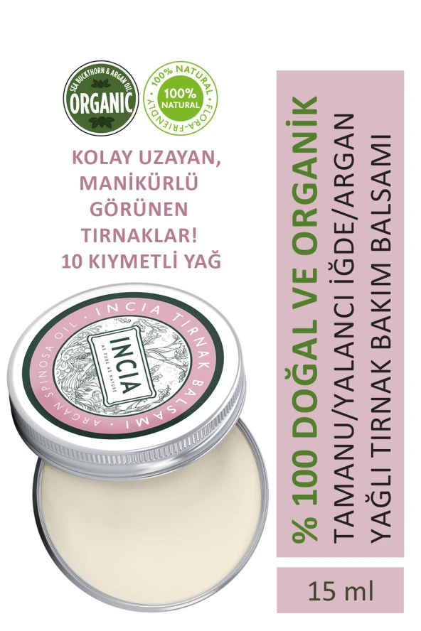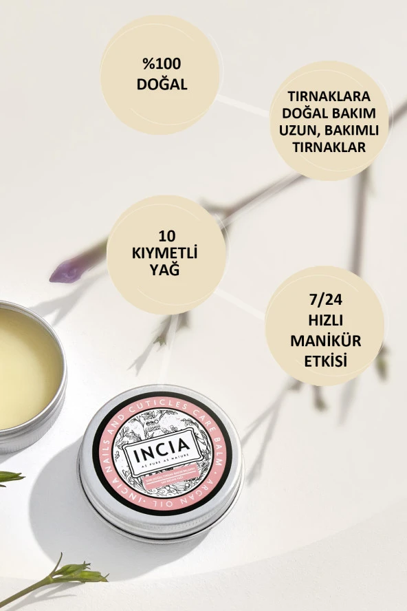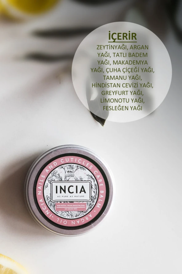 INCIA %100 Doğal Tırnak Bakım Balmı Yoğun Nemlendirici Kremi Argan Yağlı Organik Vegan 15 ml