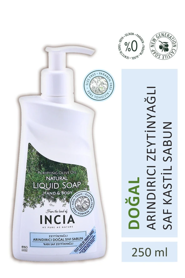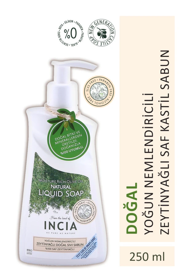 INCIA %100 Doğal Sıvı Kastil Sabunu Arındırıcı Zeytinyağlı 10 Bitkisel Değerli Yağ Vegan 250 ml