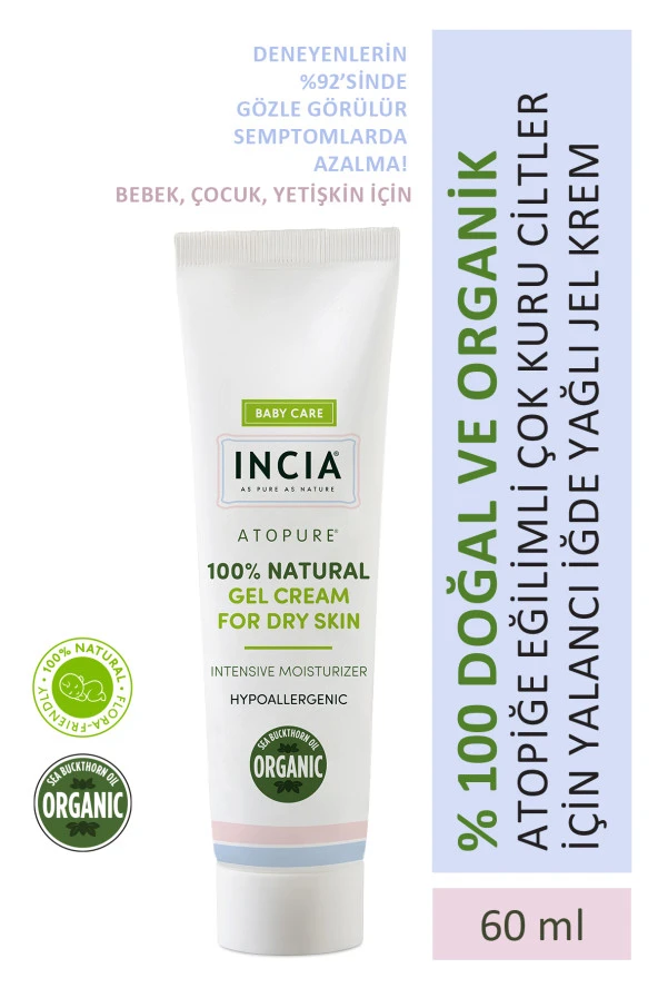 INCIA 100 Doğal Atopiğe Eğilimli Ciltler İçin Jel Krem Çok Kuru Ciltler İçin Yalancı İğde Yağı 60 ml