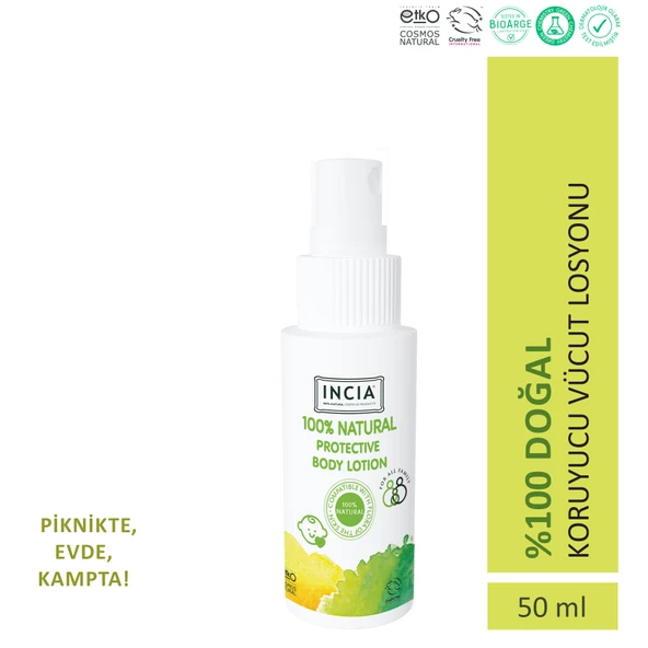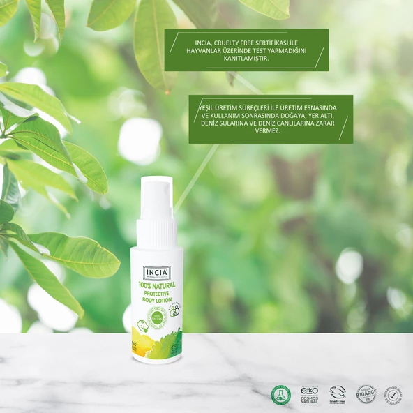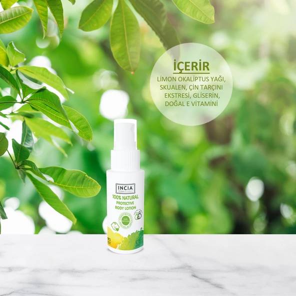 INCIA %100 Doğal Koruyucu Vücut Losyonu Sprey Yenidoğan Bebek Çocuk İçin Limon Okaliptus Vegan 50 ml