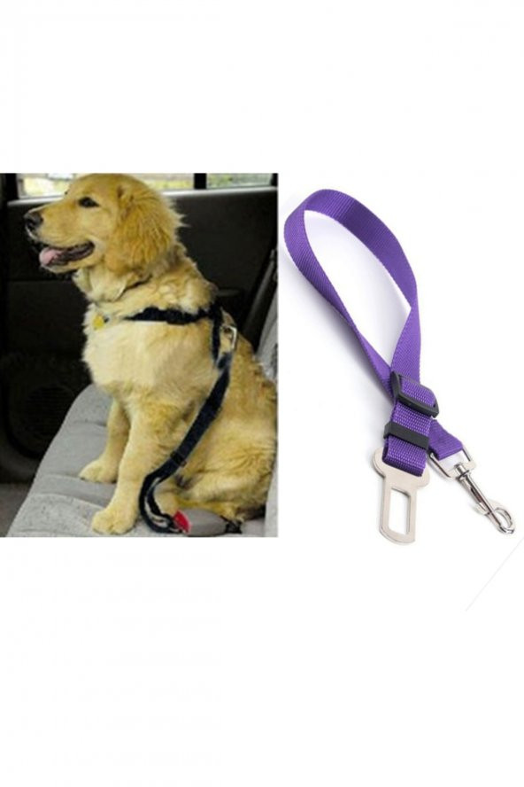 Kedi Köpek Emniyet Kemeri Tasması Ayarlanabilir Tokalı Tasma Araç Oto Emniyet Kemer Tasması Mor