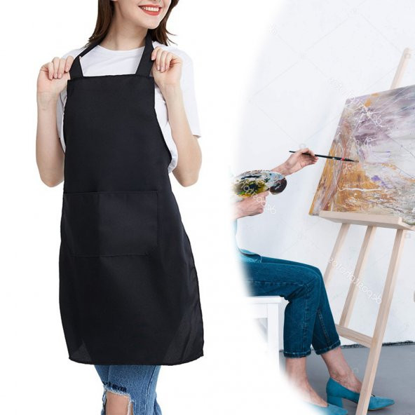 Apronix Ressam Önlüğü Askılı Ceplik Önlük Siyah