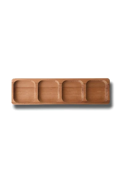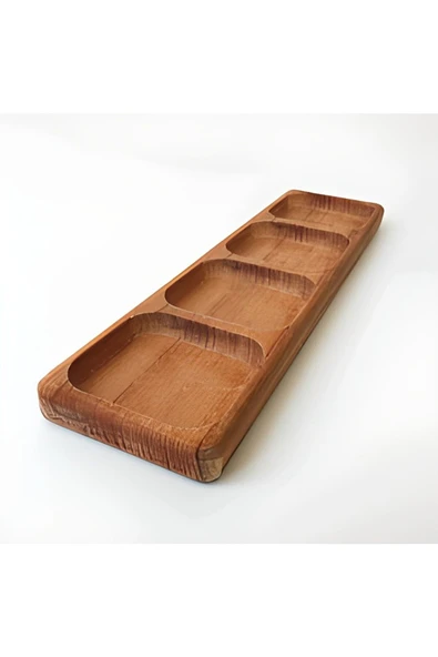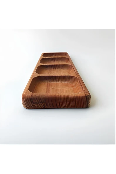Tinex Doğal Ahşap Dekoratif Çerezlik Sunumluk Sunum Tabağı Servis 4 Bölmeli