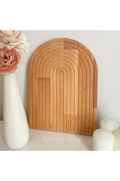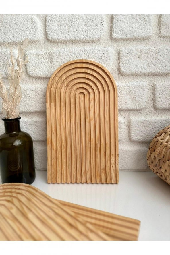 Ahşap Oymalı Gökkuşağı Dekoratif Sunum Tahtası Natural