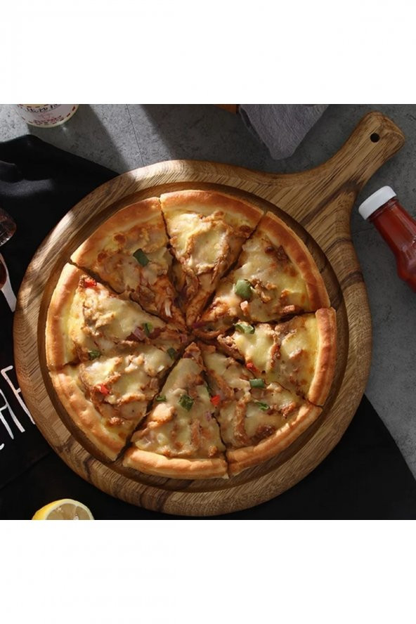 Elegan Karemiye Pizza Ahşap Sunum Tabağı Ahşap Servis Tabağı Bambu Tabak