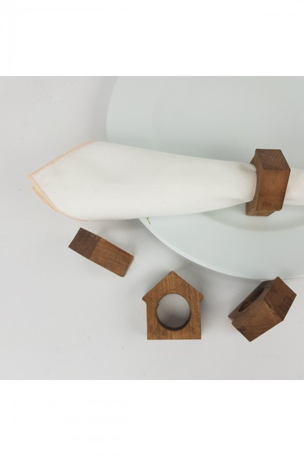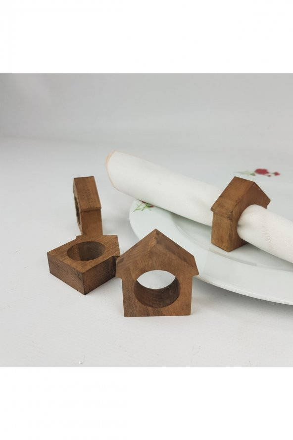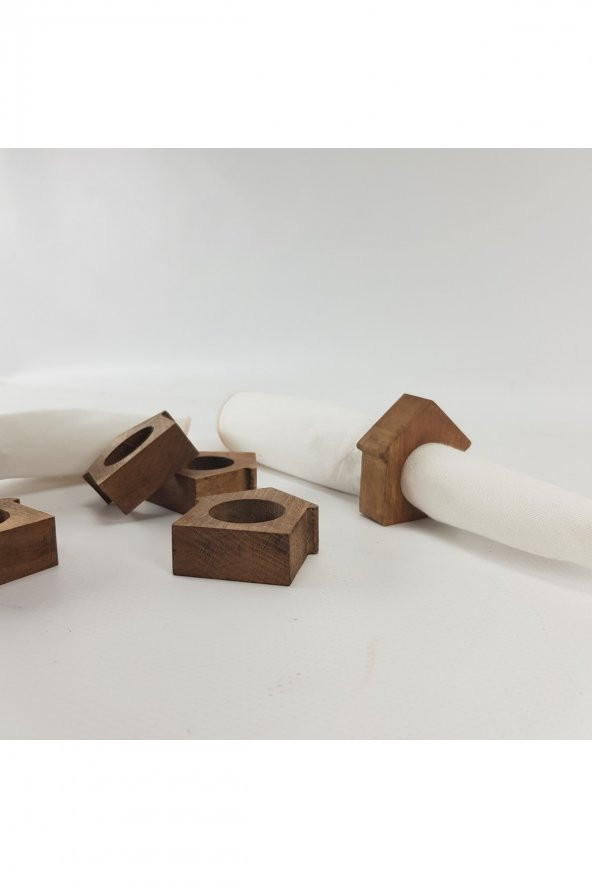 6lı Ev Modelli Ahşap Peçete Halkaları Servis Sunumu İçin Peçete Yüzüğü