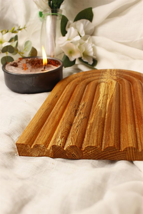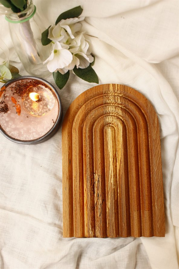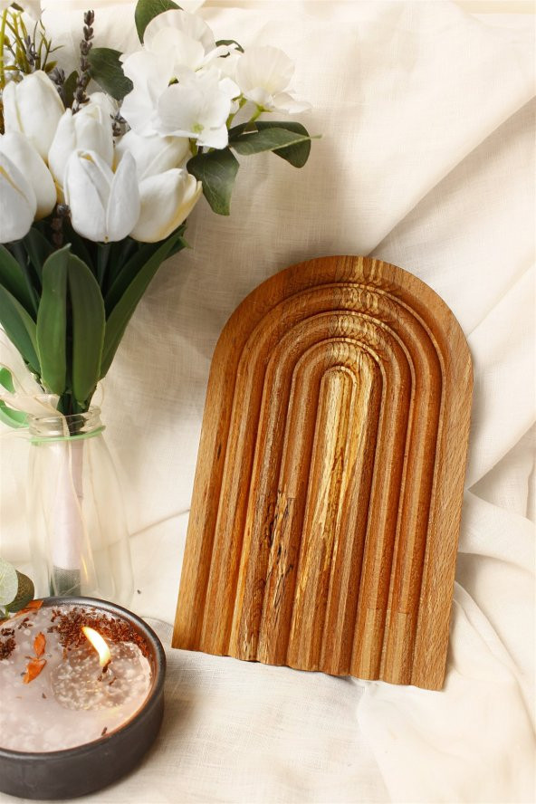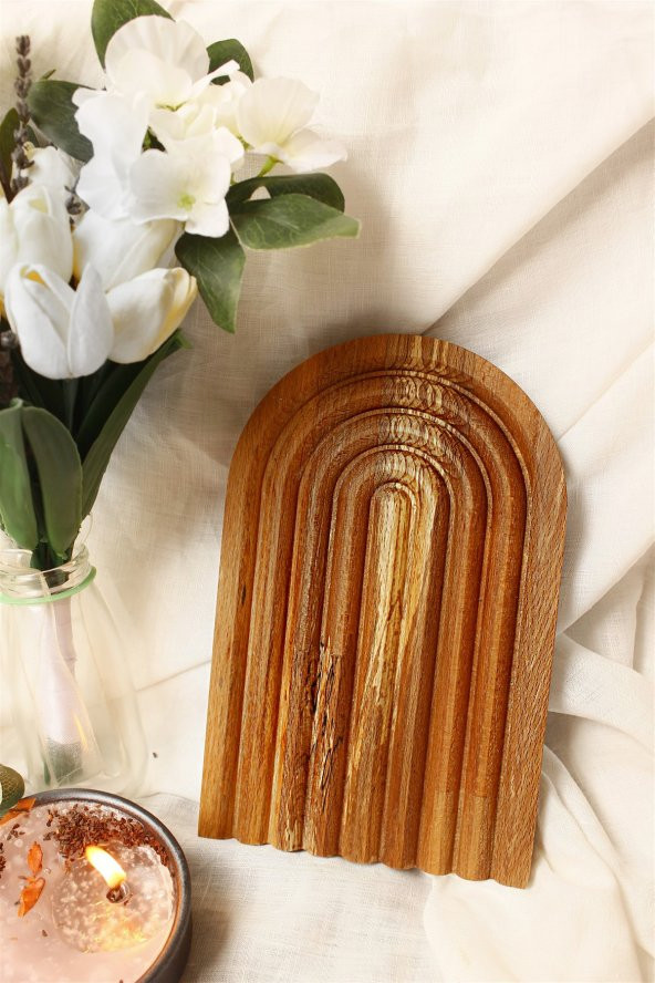 Edelya Home Ahşap Oymalı Yarım Gökkuşağı Dekoratif Ahşap Tepsi Sunum Tepsisi Sunumluk Banyo Tepsisi