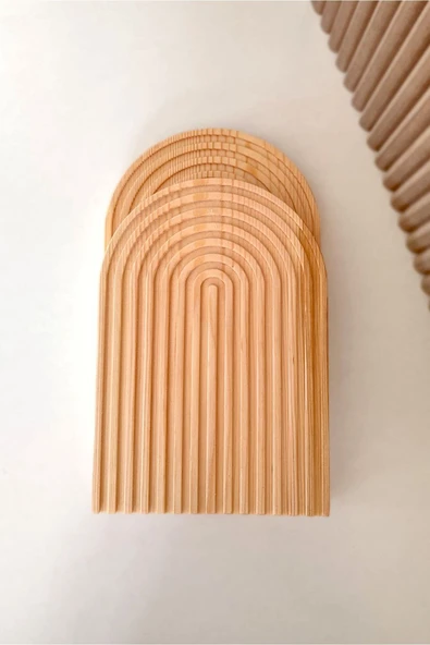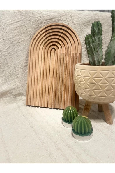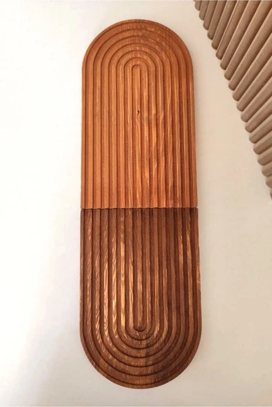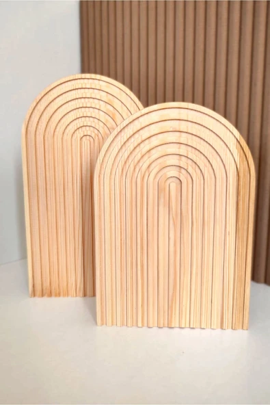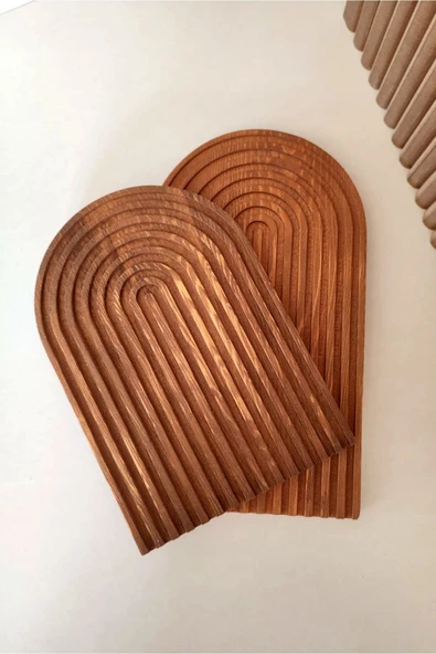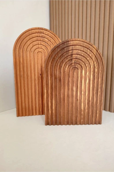 Mobawood Ahşap Gökkuşağı Oymalı 2'li Sunumluk, Dekor, Takı Standı