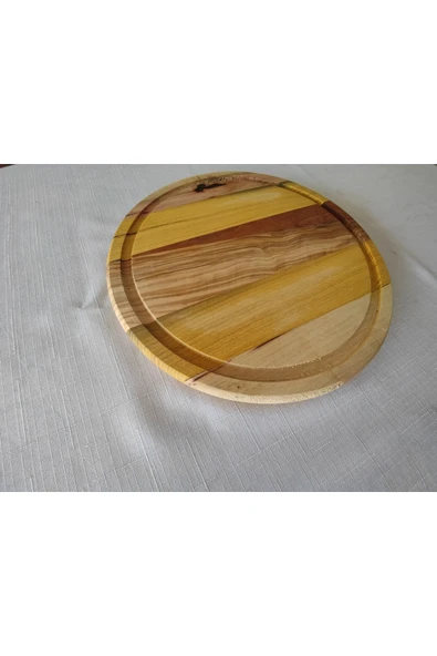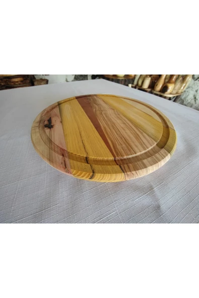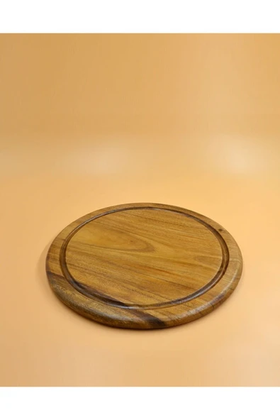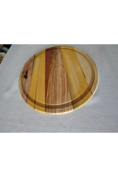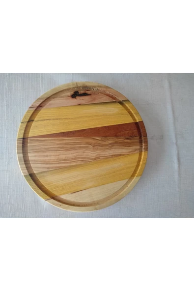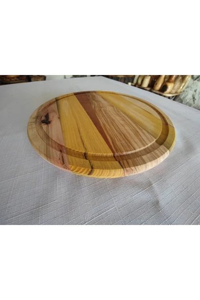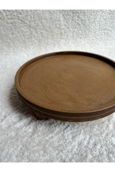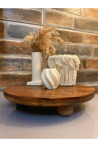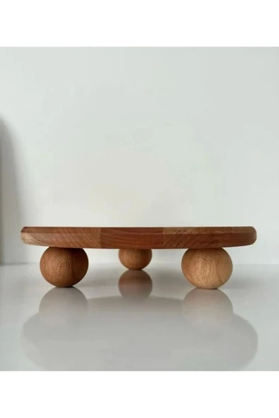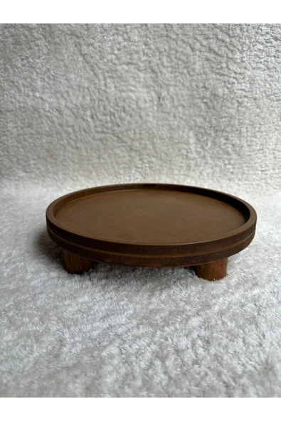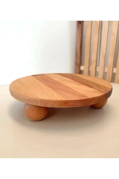Becbece Ahşap Yuvarlak Sunum Tahtası - Ayaklı Organizer Servis Tabağı - Ahşap Sunumluk - Ahşap Sunum Tepsisi