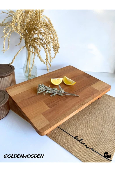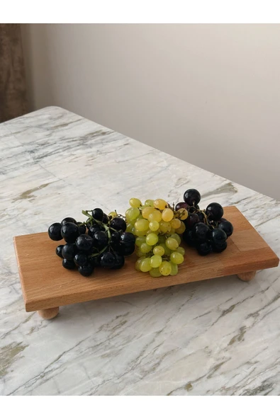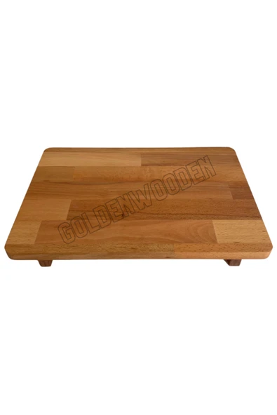 GOLDENWOODEN Doğal Ahşap Sunum Tabağı Ayaklı Ahşap Sunumluk(KAYIN/GÜRGEN)(BOY:40CM EN:27CM YÜK:6,5CM)
