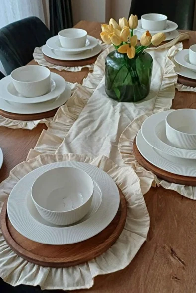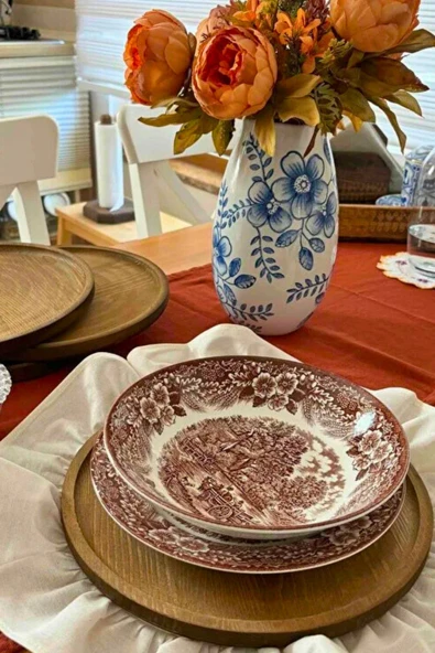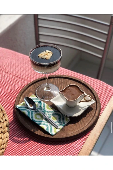 Woodcept Büyük Boy Yuvarlak Ahşap Supla ve Sunumluk, Ahşap Servis Altlığı Koyu Renk