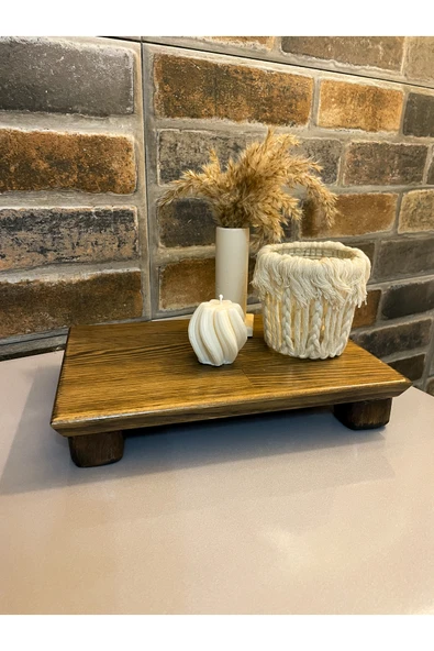 777Home 3 Top Ayaklı Dekoratif Çok Amaçlı Düzenleyici Ahşap Sunumluk Organizer 25 cm