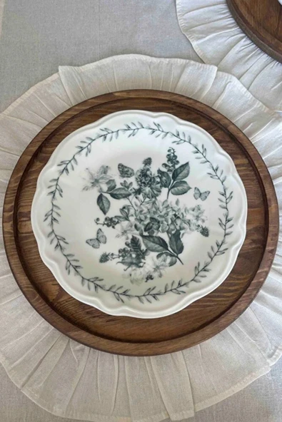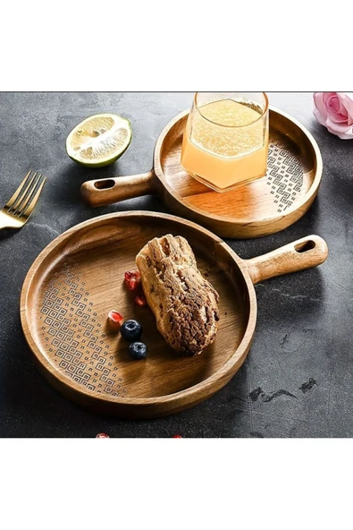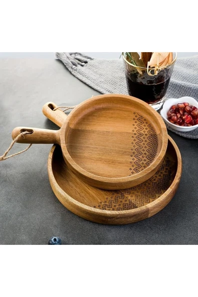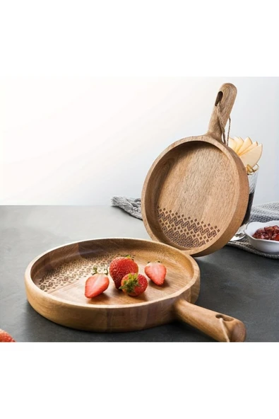 inwood Ahşap Saplı Yuvarlak İşlemeli Servis Sunum Tabağı