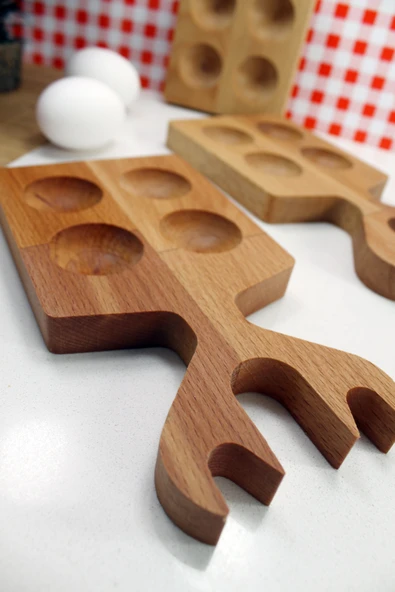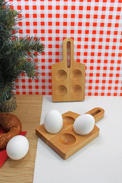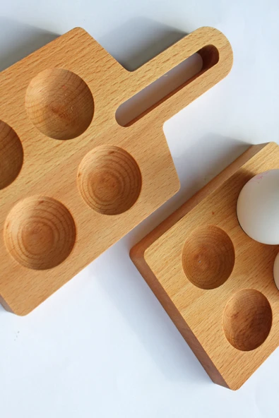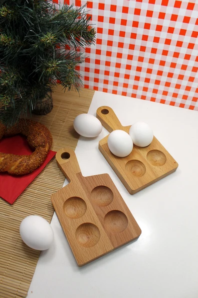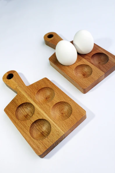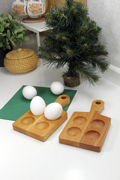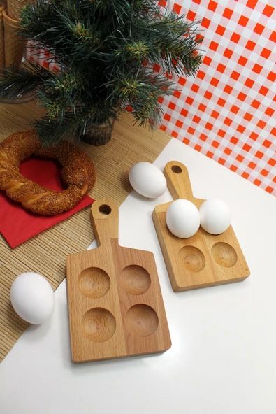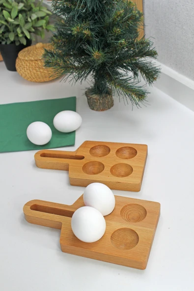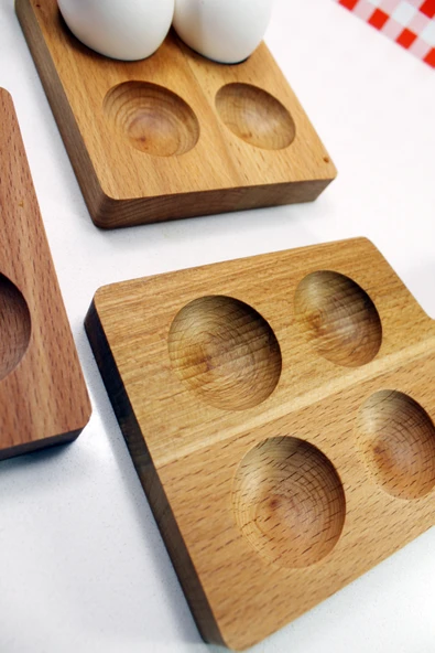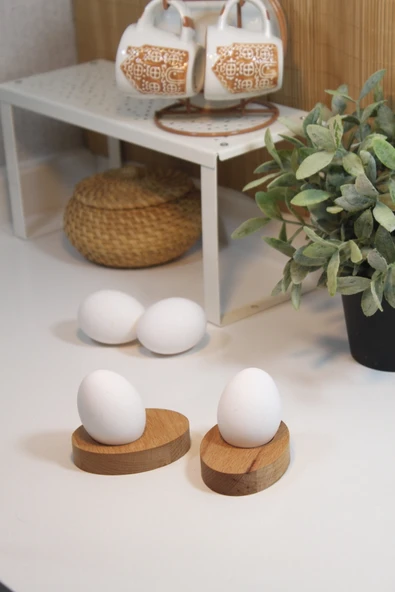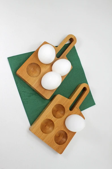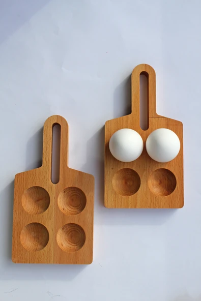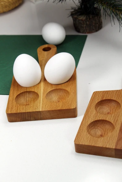 zeyvedesign 2'li Ahşap Yumurtalık %100 Kayın Ağacı